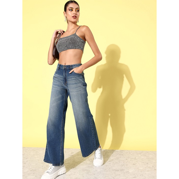Women Cotton Wide Leg Light Fade Stretchable Jeans