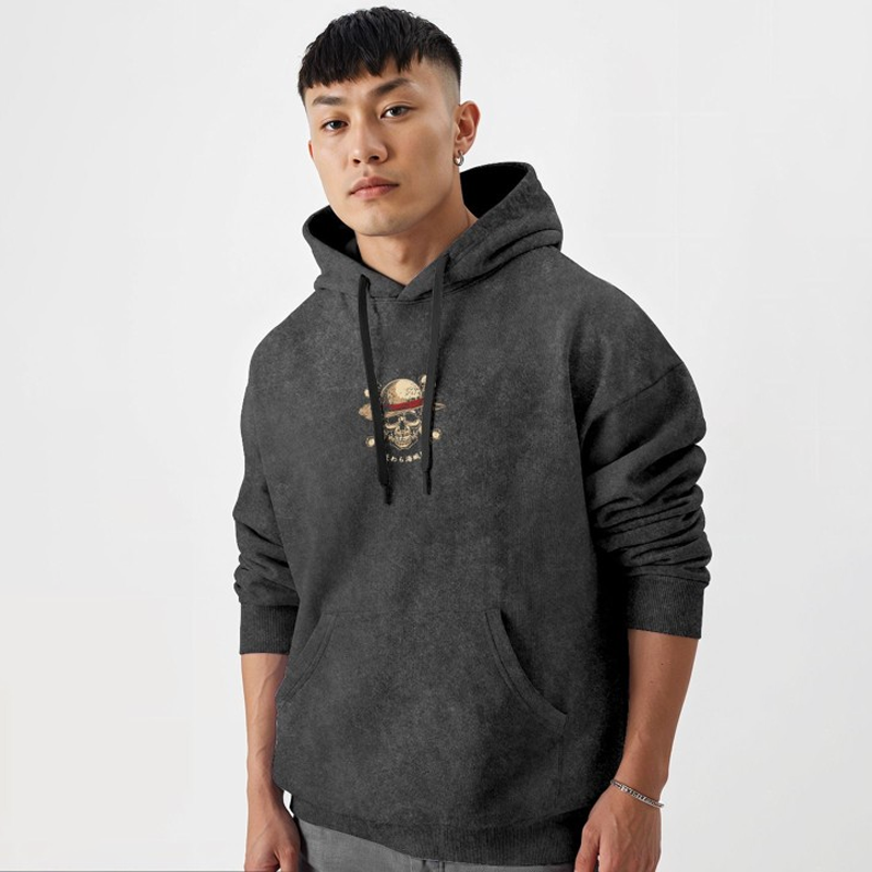 Printed Anime One Piece Mugiwara Oversized Fit Hooded Sweatshirt Acid Wash