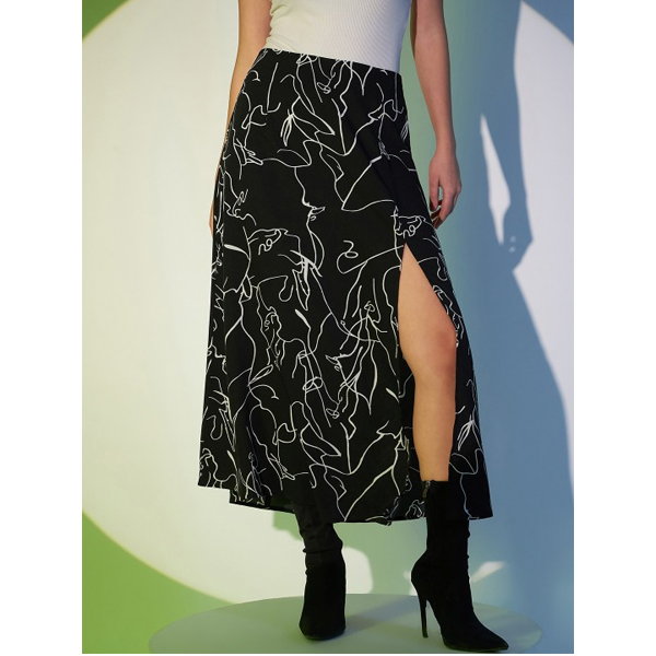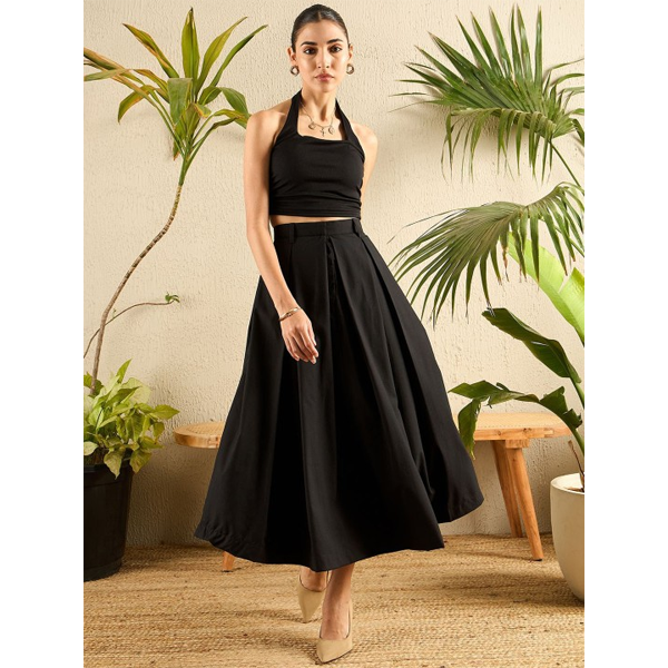 Black & Maroon Kalamkari Hand Block Print Ethnic Sustainable Maxi Pure Cotton Skirt with Gathers