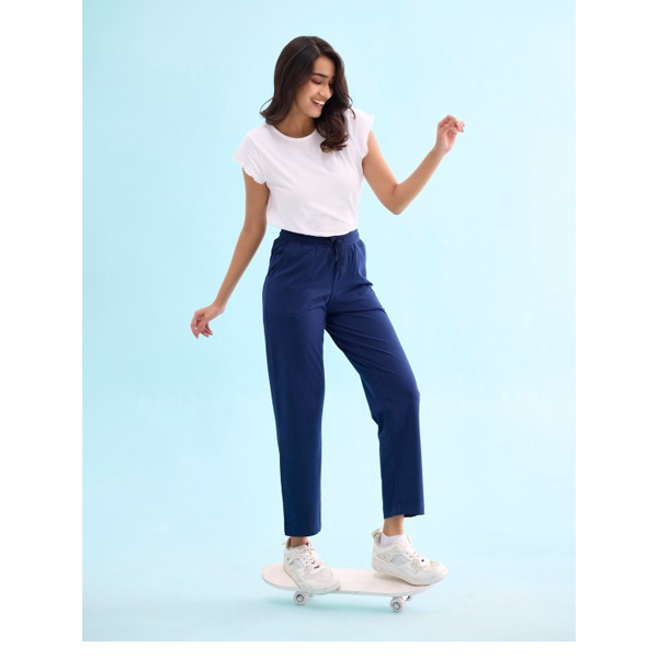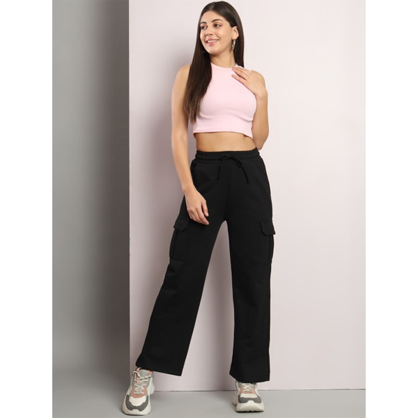 Women High Waist Wide Leg Track Pants With Cross Waist Band Detailed & CF Pin Tuck