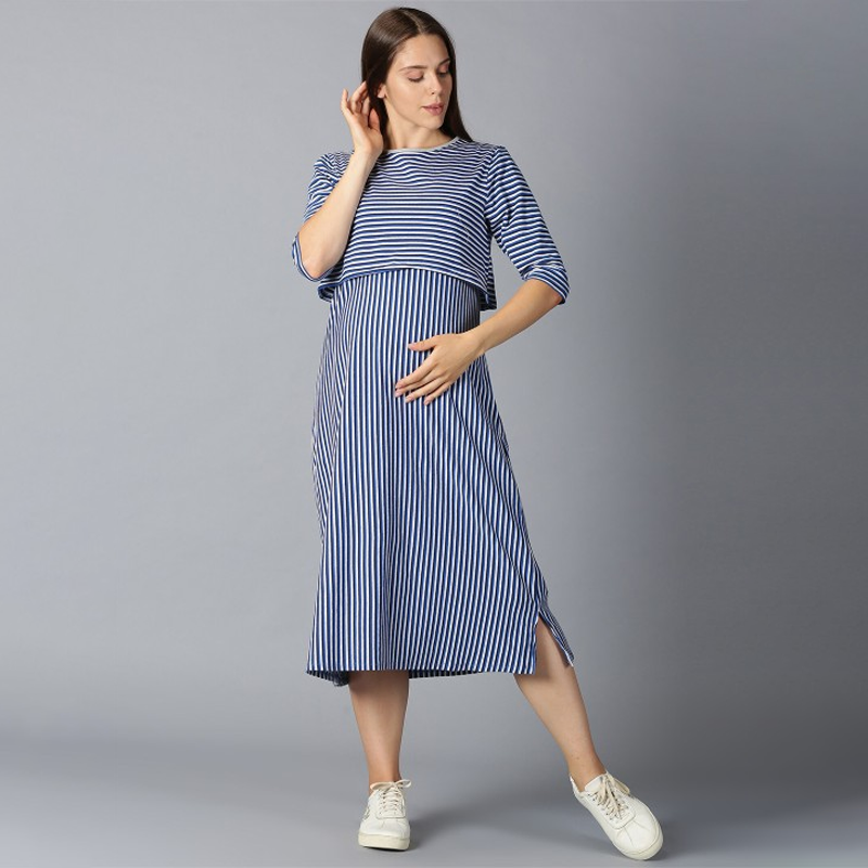 Striped Layered Maternity A-Line Midi Dress