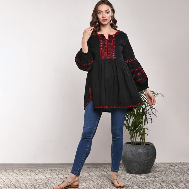 Black & Red Embroidered Tunic